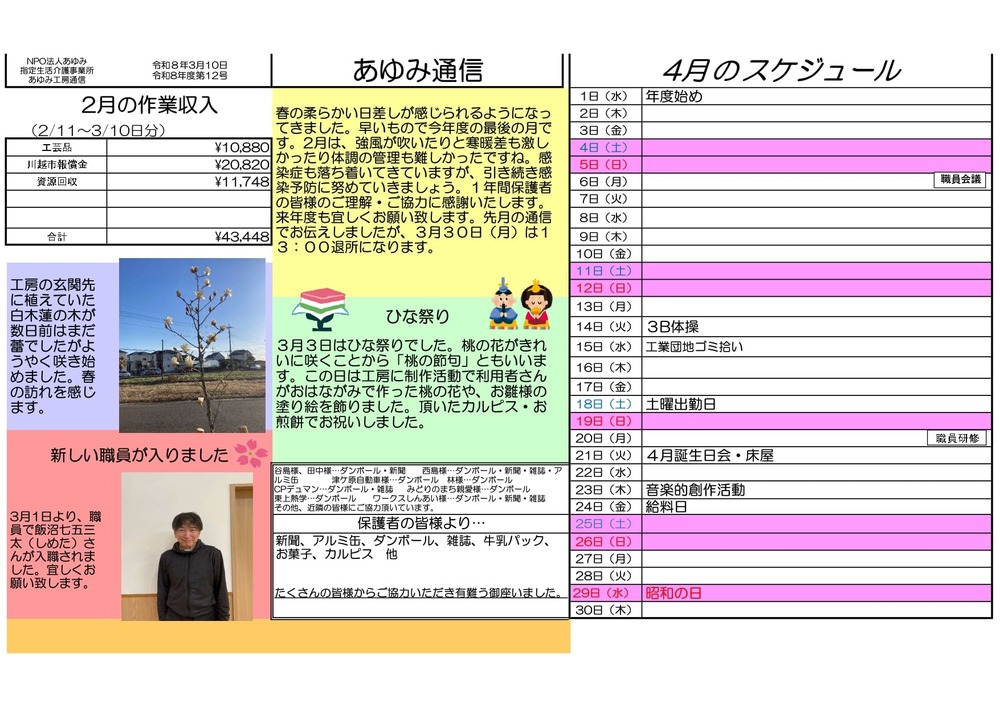 3月のあゆみ通信です。